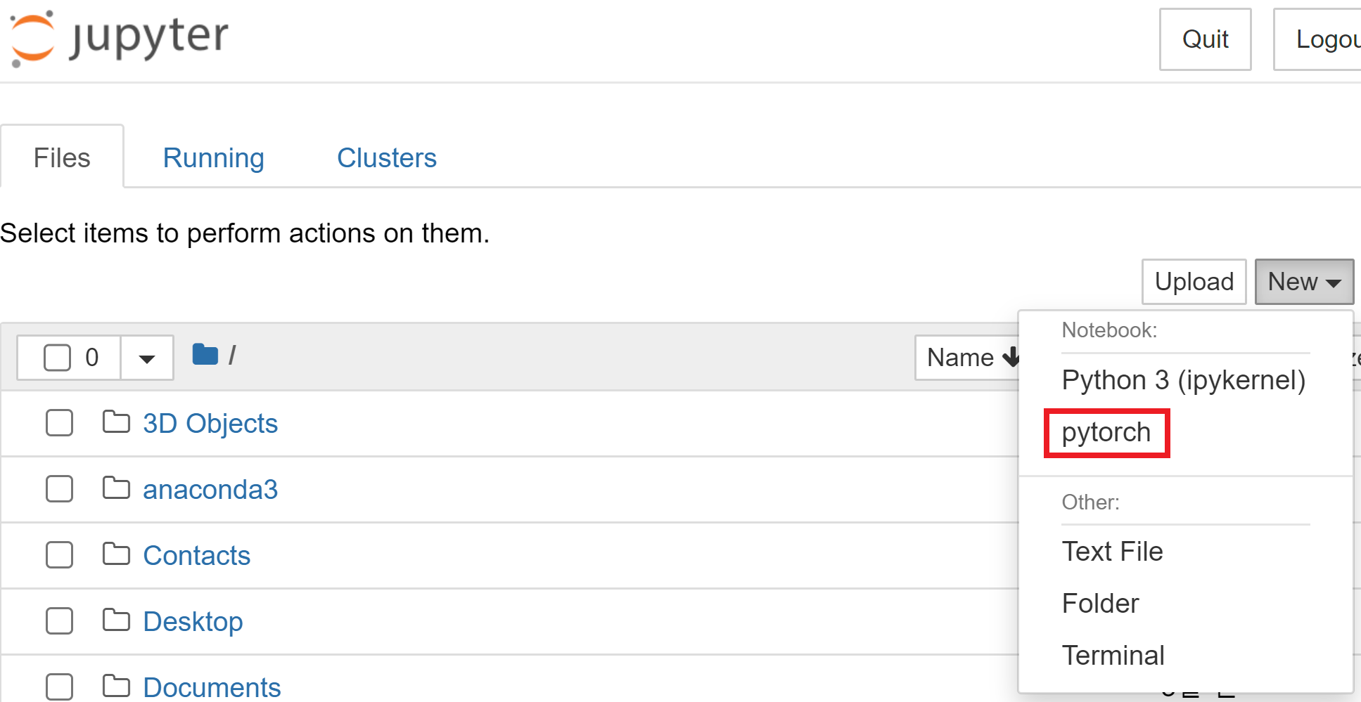 'pytorch'라는 새로운 가상환경 커널을 연결함으로써