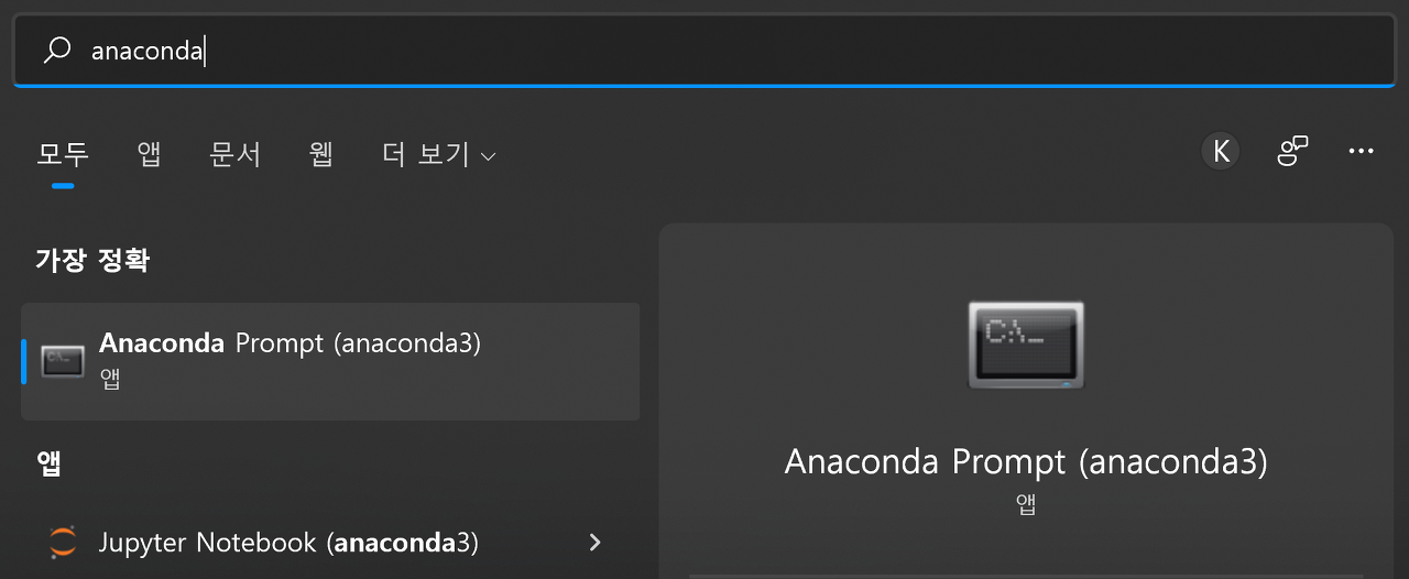 Anaconda 설치 후 기본값으로 아래처럼 base 환경에 자동 진입하게 된다 (사용자 이름 앞에 (base)라고 뜬다!)