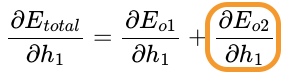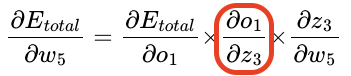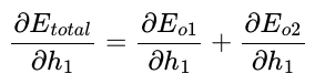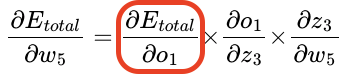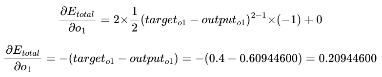 전체 오차 $E_{total}$을 예측값(출력값)인 output $o_{1}$으로 편미분하면