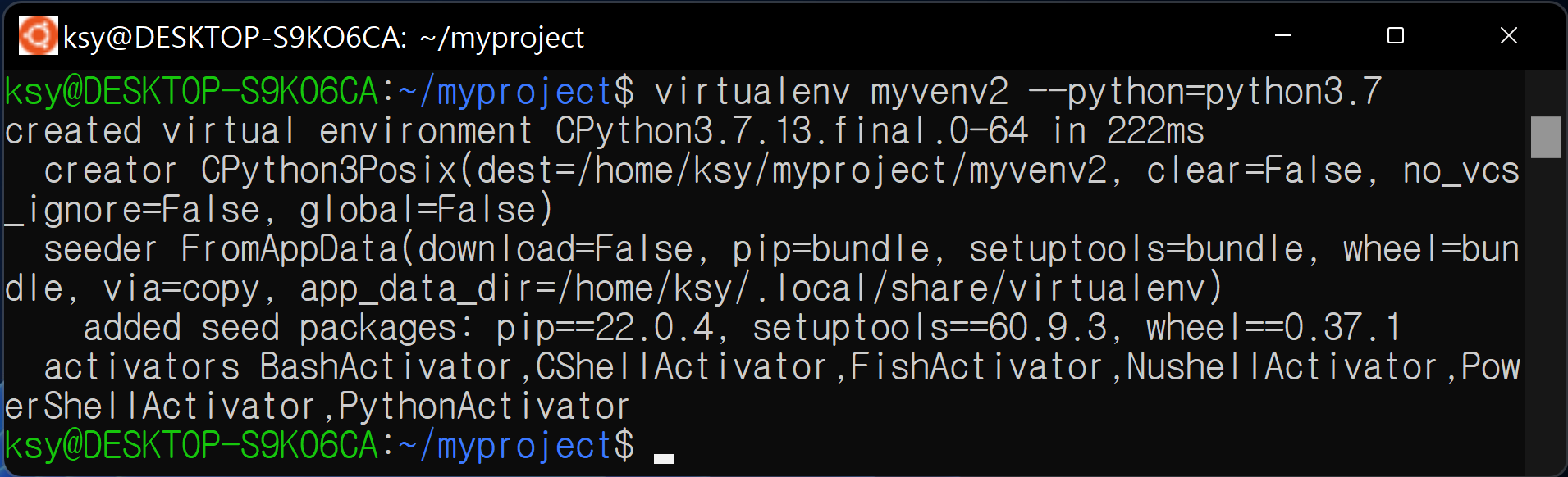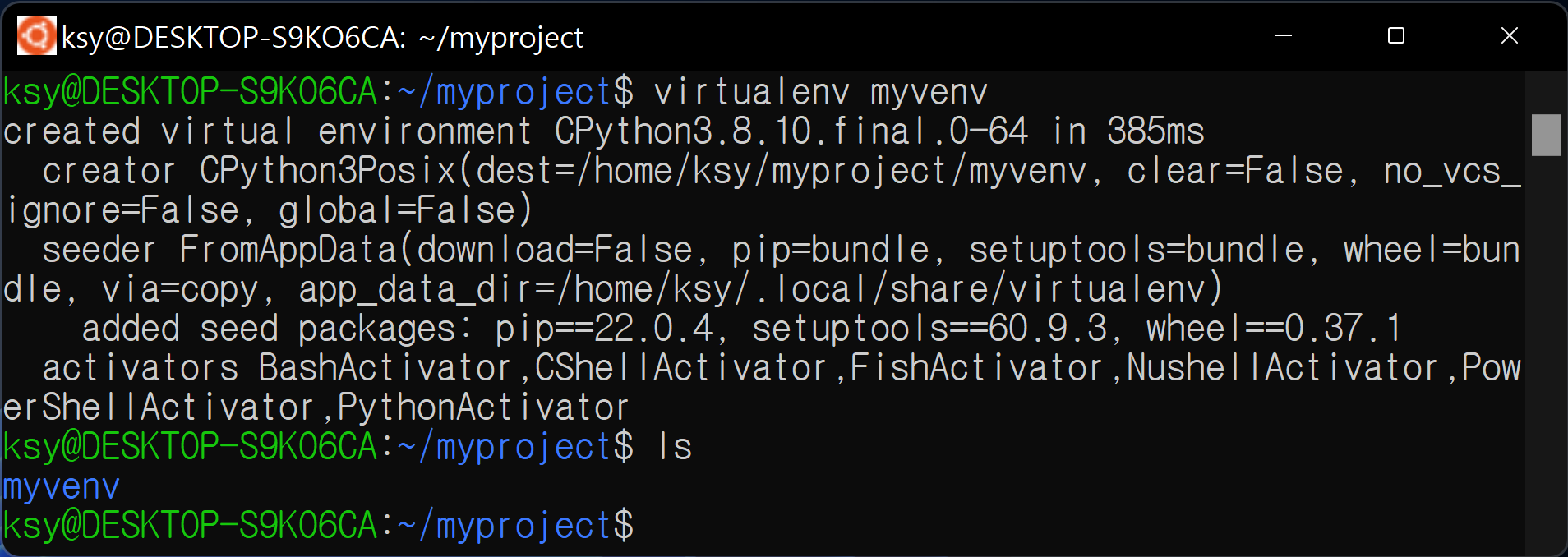 WSL2에는 Python3.8이 기본적으로 탑재되어있음 → 가상환경 생성 시 기본적으로 Python3.8로 생성