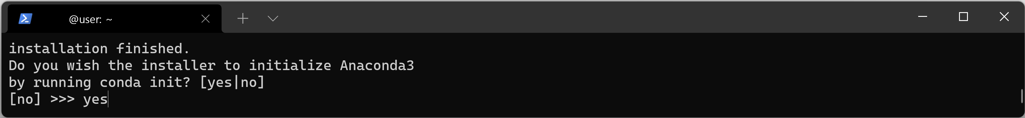 Do you wish the installer to initialize Anaconda3 by running conda init? 에서 yes
