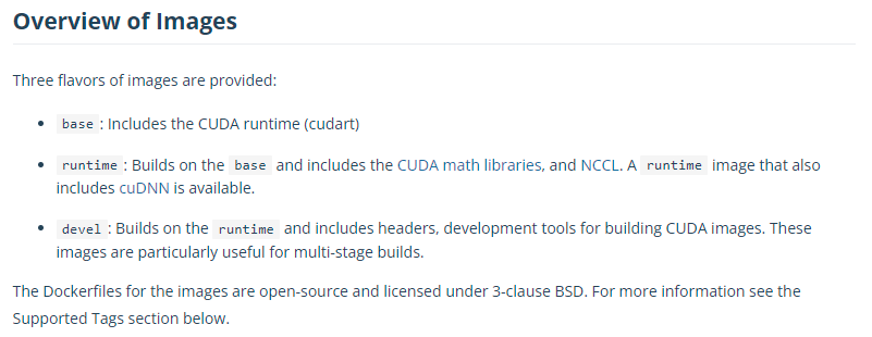 나는 cuDNN이 필요하니까 base, runtime, devel 중 runtime만 주구장창 받았다