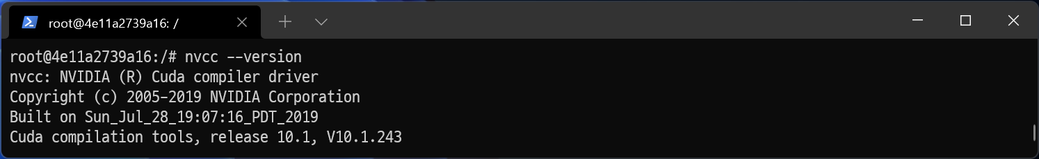runtime 버전의 이미지로 컨테이너를 만들고나서, CUDA 버전을 확인해보면