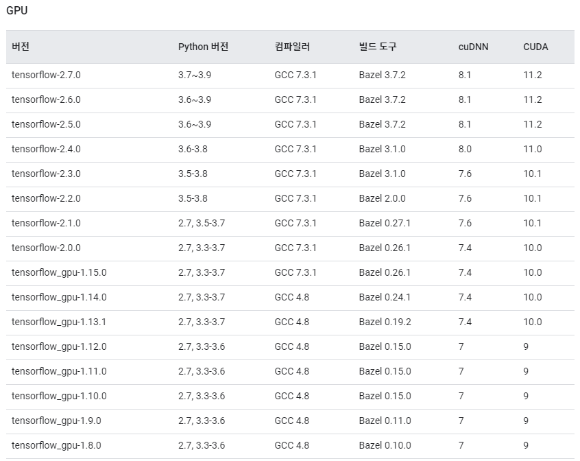 (TensorFlow만 해도 버전별로 각기 다른 CUDA, cuDNN이 필요하다!)